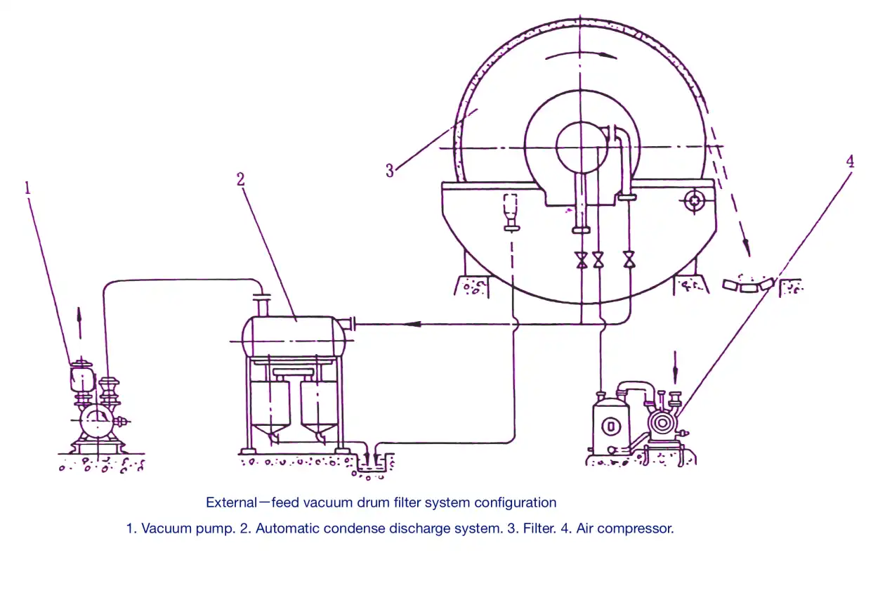 External-feed vacuum drum filters are designed to achieve low residual cake moisture while maintaining high throughput.